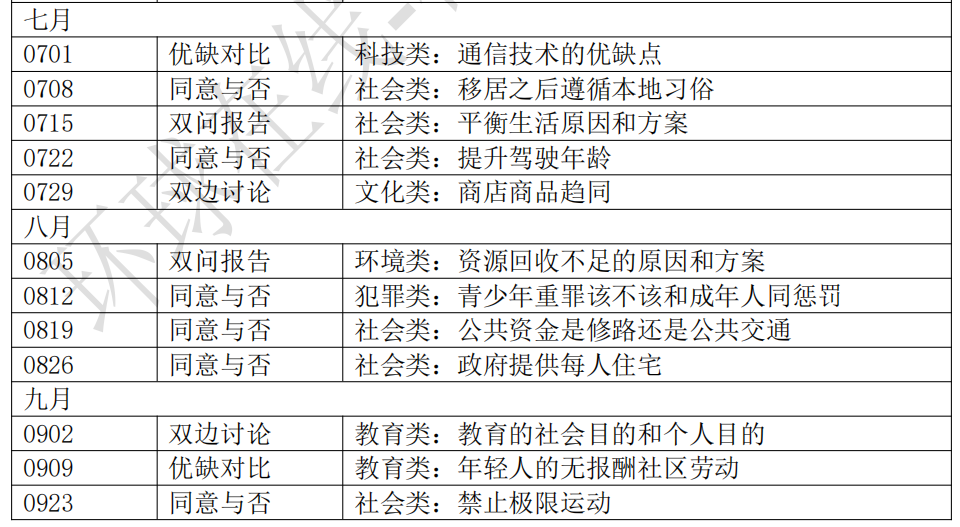 因为这几道题都是题库中的“老演员”了,所以接下来10月份的大作文预测没有调整,仍然按照之间的预测题目准备即可。